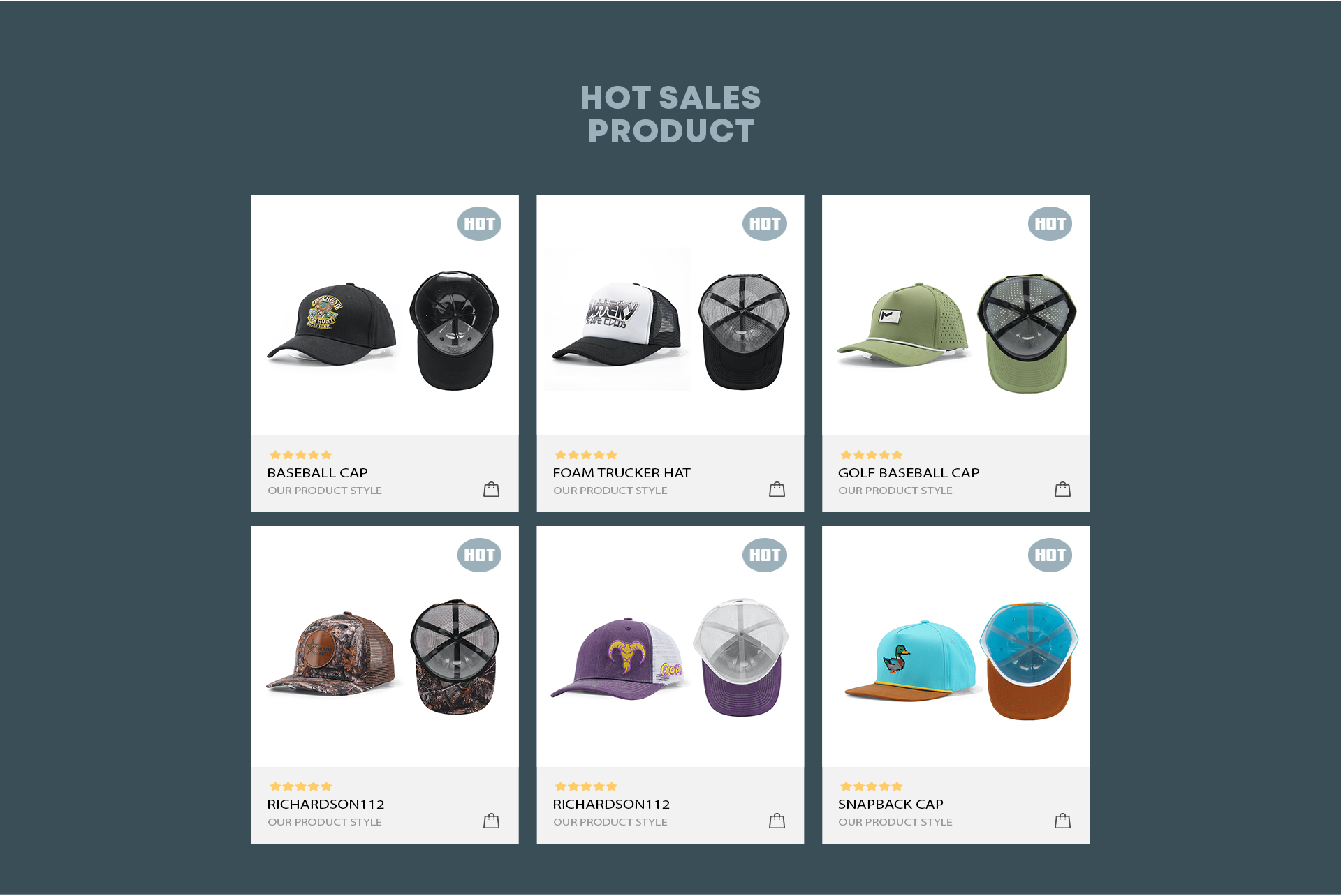 Principaux produits : Chapeaux, Casquettes de baseball, Casquettes de camionneur, T-shirt,Hoodies